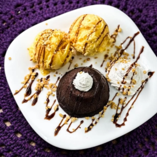 Bolo de chocolate com sorvete